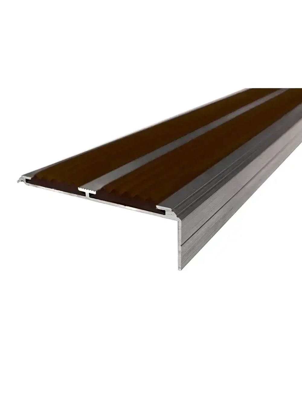 Алюминиевый Полоса-порог Евро 70 мм на 4 мм с 2 коричневыми резиновыми вставками - 5 штук