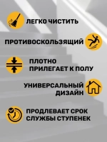 Резиновая накладка на ступень, проступь Классик 25x75 см, резина, цвет чёрный, упаковка из 5 штук. Резиновая проступь для ступени или, как ее еще называют, резиновая накладка коврик служит экономичным способом противоскольжения. Размер: 250х750ммТолщина: 5мм. Температурный режим: -40С-+60С Материал: резина. Цвет: черный. В упаковка 5 штук. Резиновая накладка - проступь, цена которой варьируется в зависимости от менее или более роскошного вида, это отличный способ без особых хлопот получить безопасную площадку лестничного проема. Вы забудите о скользких ступенях и обезопасите себя и близких. В короткие сроки ступень станет красивым местом; вы сможете без всяких опасений передвигаться по ступеням, не опасаясь риска подсказывания. Стоит отметить, что резиновая проступь так же пригодится всем у кого в доме есть пожилые люди и дети. После укладки проступи на ступени, подъем и спуск становятся намного безопаснее!